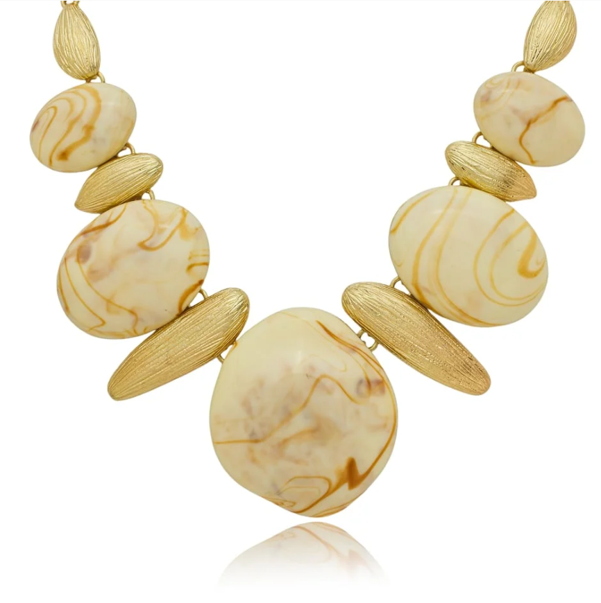 Já em um conjunto bege ou branco, colares e anéis dourados podem se destacar com elegância.