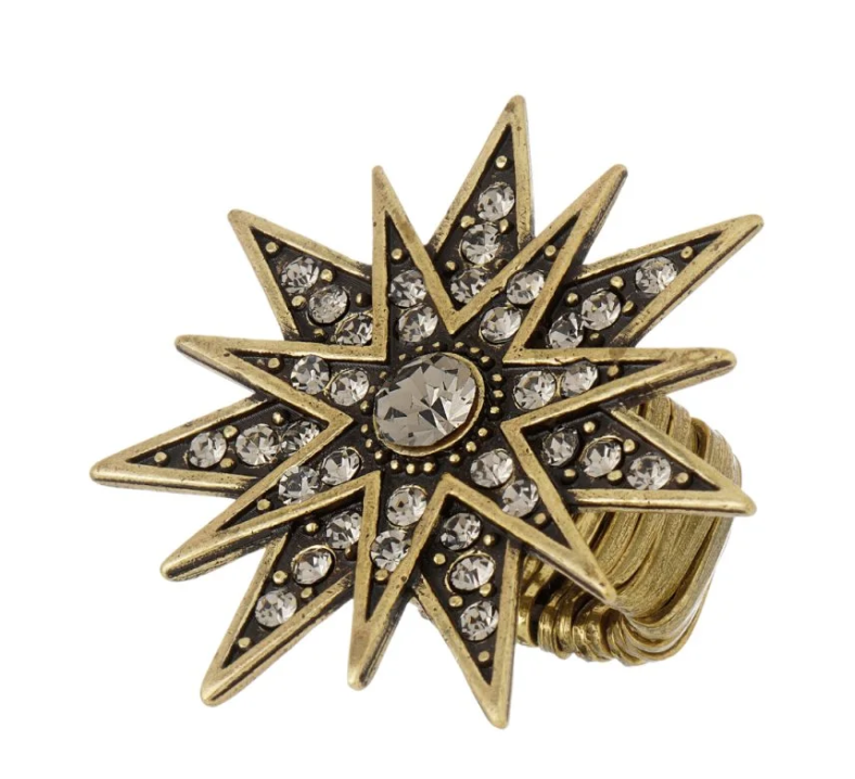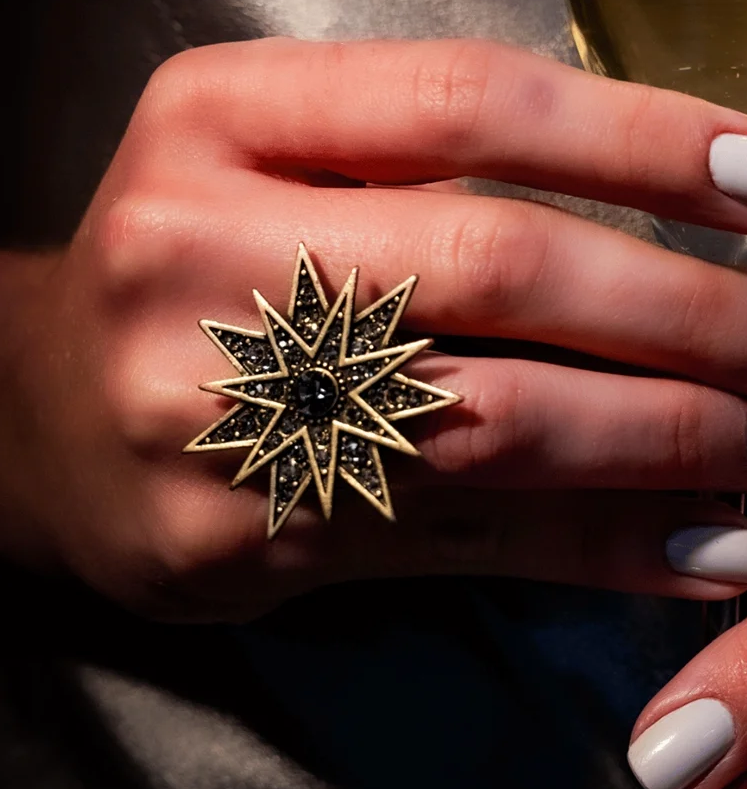 Associados historicamente à celebração e ao luxo, os strass aparecem aqui com acabamento refinado, refletindo luz de forma equilibrada. O dourado remete ao calor e à sofisticação clássica, enquanto o prateado dialoga com a modernidade e a neutralidade elegante.
