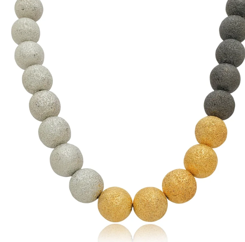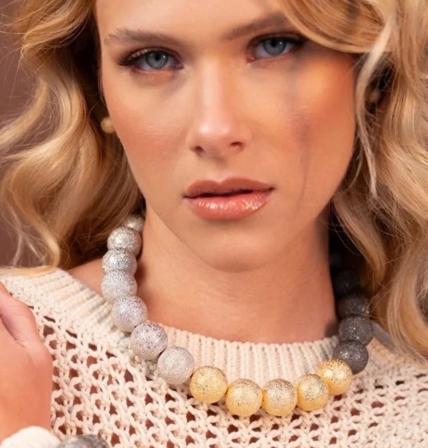 As esferas remetem à perfeição geométrica, enquanto o acabamento diamantado acrescenta textura e brilho pontual, ideal para quem busca sofisticação sem exageros.