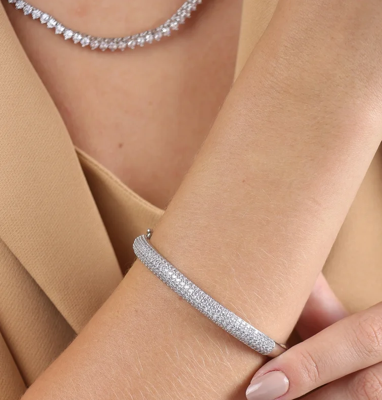 Sequência de pedrinhas ou zircônias alinhadas cria um brilho contínuo e sofisticado. Quando usadas sobre luvas, trazem ponto de luz e elegância sutil.