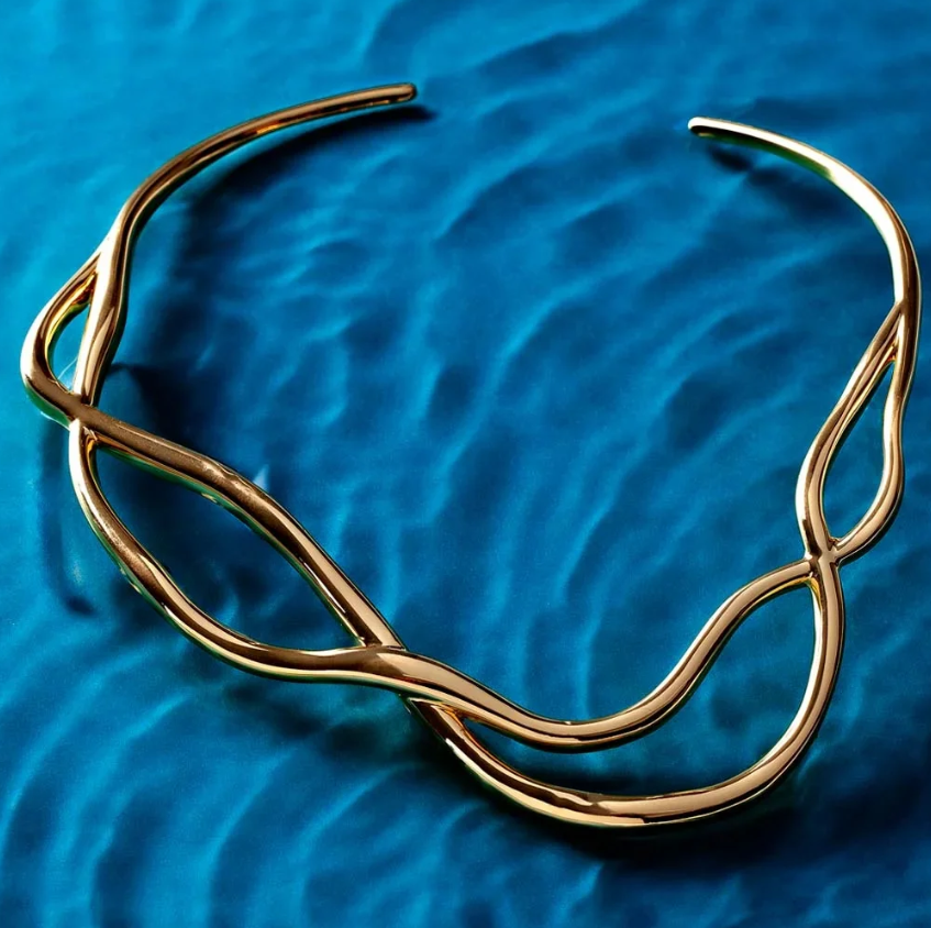 As semijoias Bah Porto seguem exatamente esse caminho. O uso de formas vazadas em ouro e prata, curvas assimétricas e volumes que remetem ao movimento do mar cria peças que parecem moldadas pelo tempo, não por uma máquina. Essa estética orgânica conversa diretamente com coleções apresentadas em desfiles de marcas internacionais que apostaram em acessórios com aparência artesanal, porém sofisticada.
